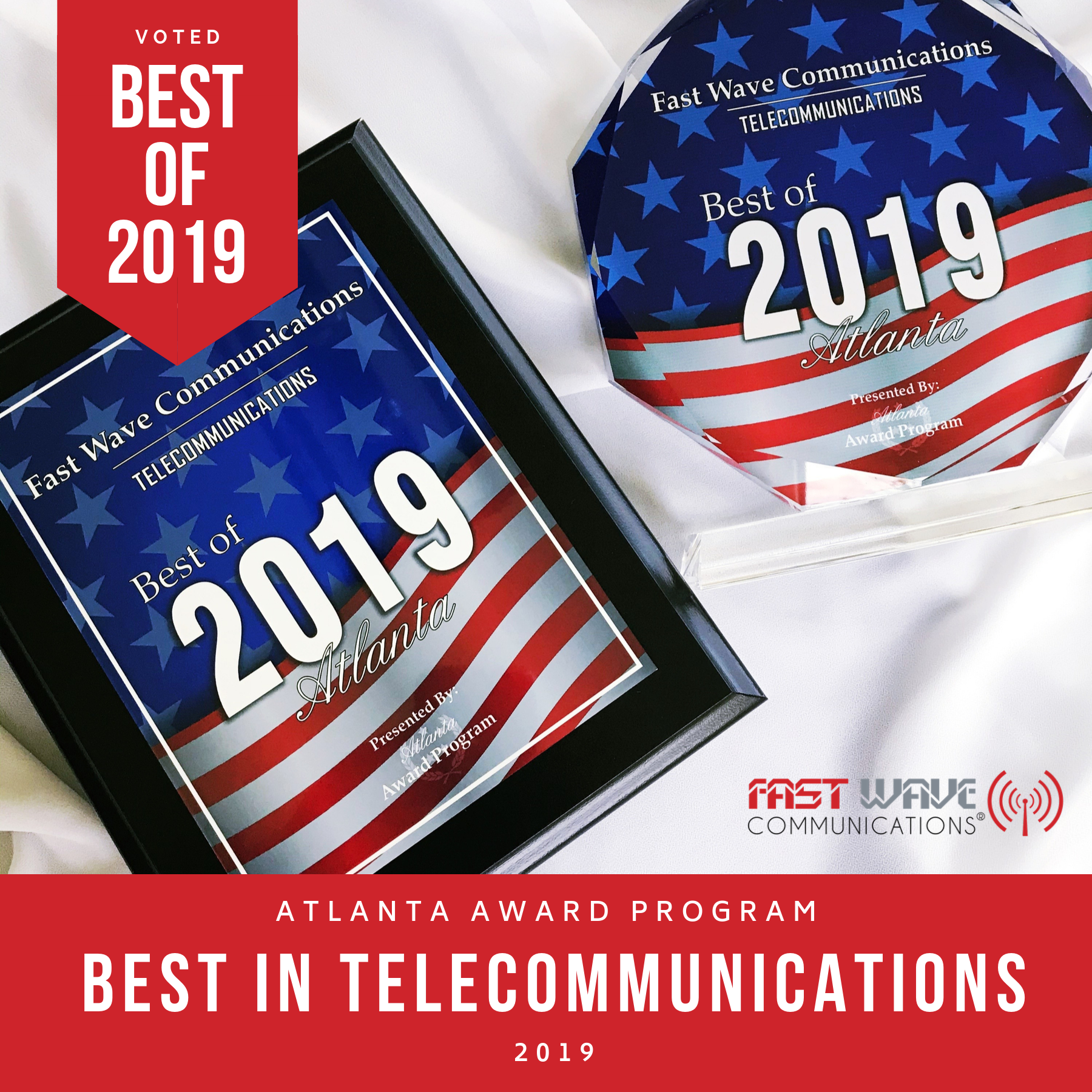 ATLANTA September 4, 2019 -- Fast Wave Communications has been selected for the 2019 Best of Atlanta Award in the Telecommunications category by the Atlanta Award Program.